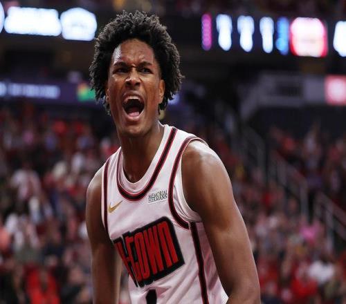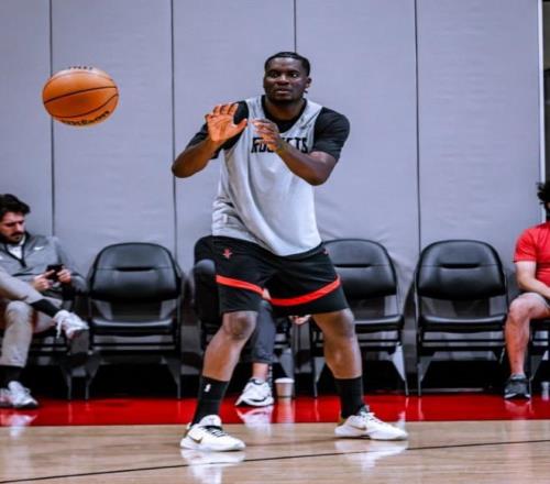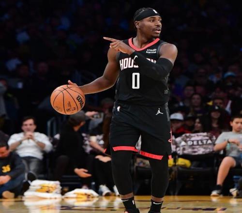 作为本场比赛火箭队主力控球后卫的22岁新人阿门・汤普森,他的身高也达到了2米03,在NBA当中也算是前锋级别的身高了。