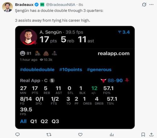 北京时间1月14日,火箭以119-113击败公牛结束三连败,随着太阳不敌热火,火箭再度重返西部第六。这场比赛申京的表现只能用全面来诠释,他的脚踝伤势刚好一点就各种暴扣炸框,他才是火箭的真实一号位,末节单独带队期间也能咬住分差,申京作为全明星球员配得上他去年夏天拿分五年1.85亿。