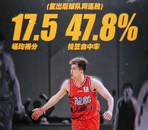 复出的两场比赛,郭艾伦场均用47.8%的命中率拿下17.5分,全部赢球,还是国内一线后卫的水准。赛季至今,郭艾伦打了4场比赛,场均15分3篮板3.3助攻,投篮命中率达到了48.8%,还是非常强势。