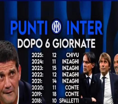 齐沃带国米前6轮成绩不及斯帅、孔蒂、小因,但高于去年同期