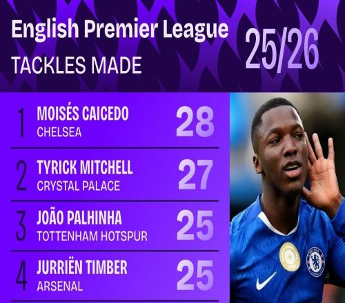 本赛季英超抢断榜前10:凯塞多第1,帕利尼亚、廷贝尔并列第3